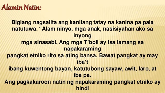 Ang iba pang mga isla ay ang mga. Umindak ang mga mananayaw sa mga kalsada ng lungsod hanggang sa humantong sa Kadayawan Square para sa grand showdown. Tandaan Natin Ang kuwentong bayan na sikat sa aming pangkat etniko ay.