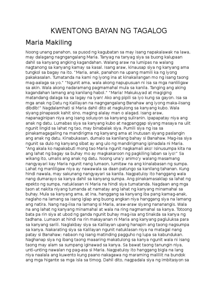 Kwentong bayan ng mga tagalog maria makiling. There is no turning back. Magandanga diwatang nag ngangalang Mariang Makiling. Hence there is also a folklore based on Maria Makiling who is basically a fairy goddess whom ensures.