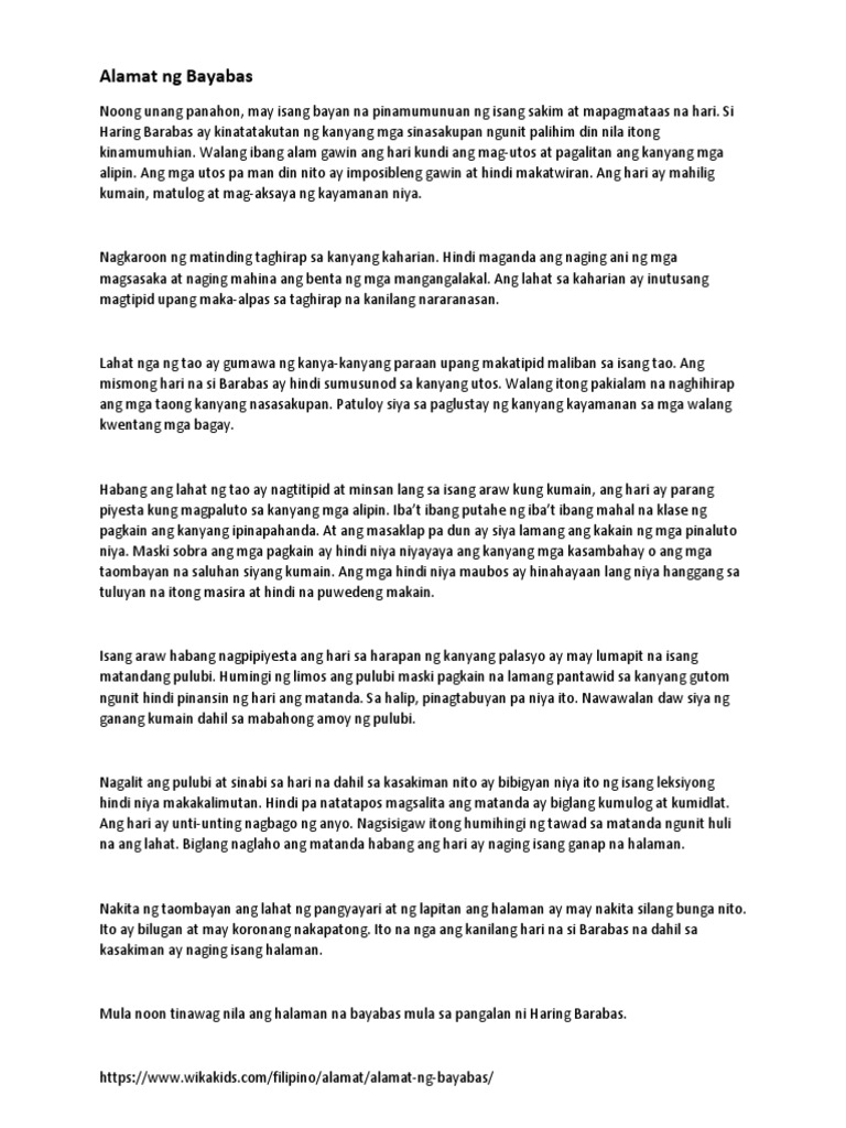 Walang awa niyang ipinakulong ang pobreng mangingisda. Alamat Ng Bayabas Buod Noong unang panahon may isang sultan na nagngangalang Barabas. Walang ibang alam gawin ang hari kundi ang mag-utos at pagalitan ang kanyang mga alipin.