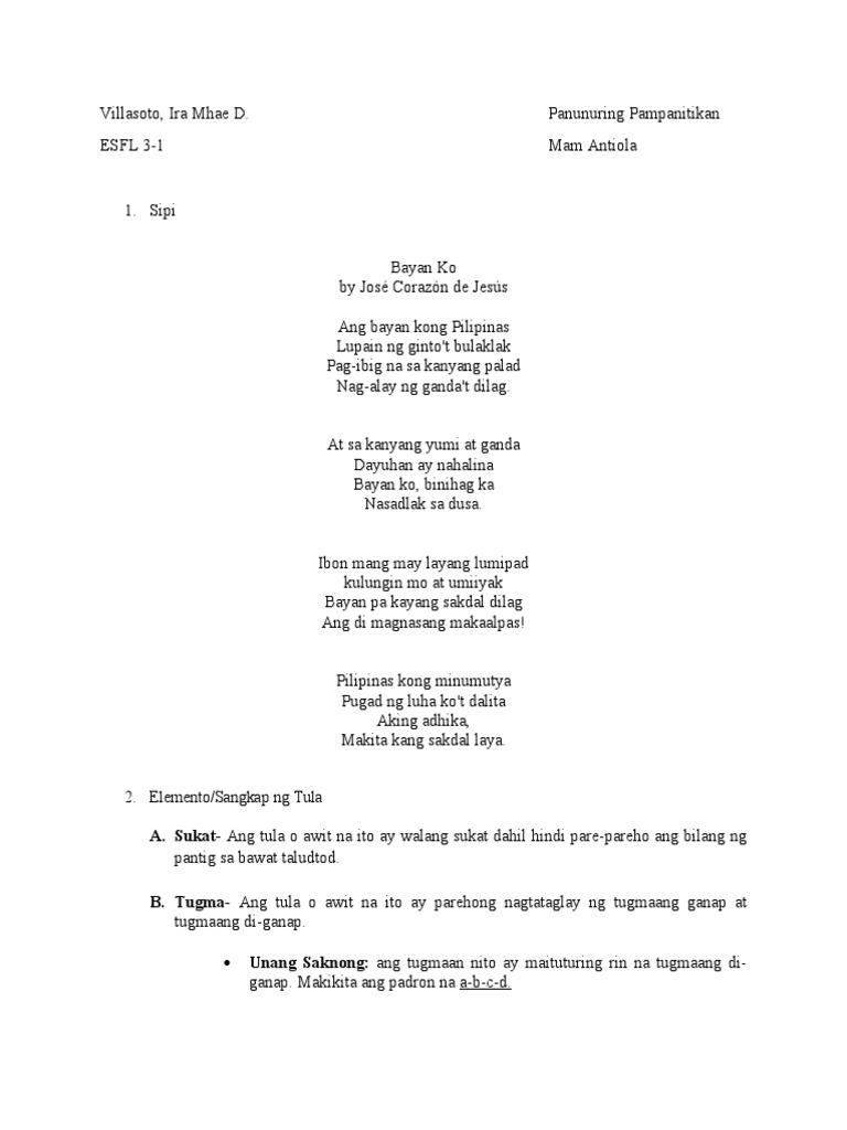 Pagsusuri ng Tula Batay sa Teoryang Imahismo Tungkol saan ang modyul na ito. Bayan Ko alexis says. Naranasan mo bang magpalipad ng saranggola o dili kayay guryon.