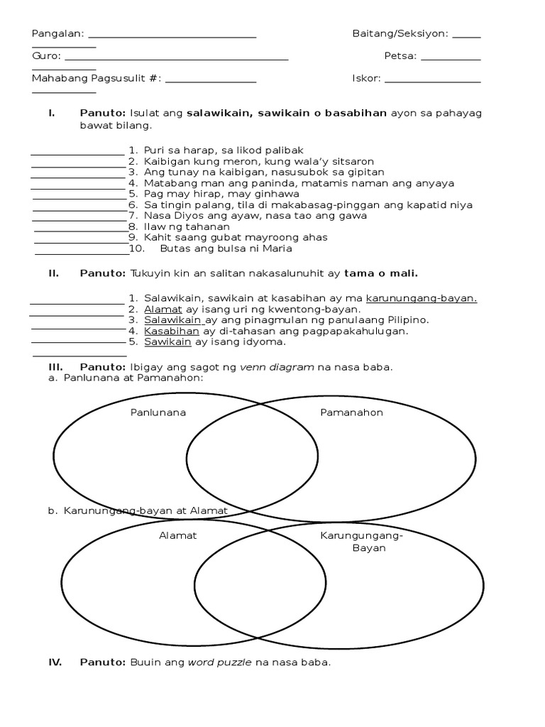 Some of the worksheets for this concept are Filipino baitang 7 ikatlong markahan Pinag ayaw ayaw na gawain sa filipino baitang walo taong Philippine money and currency Kaantasan ng pang uri 6 work. Ito ay kinuha sa mga Learning Strand 1 Modules. Kasabihan ay di-tahasan ang pagpapakahulugan.